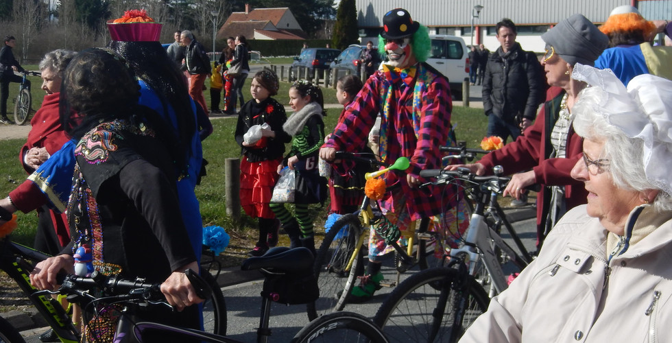 Les "cyclos carnavaleux" avaient revêtus leurs atours et habillés leurs montures et se sont gentiment mêlés aux enfants.
